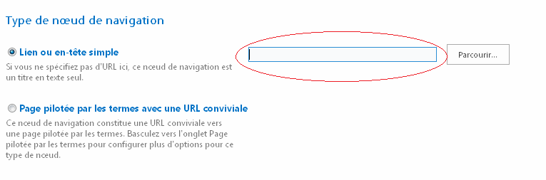 Pour corriger le problème, il a fallu utiliser l'option "Lien ou en-tête simple" et saisir l'URL de la page cible.